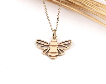 Solid Gold Bee Pendant Bee Necklace Gold Bee Charm Symbolic Etsy Uk